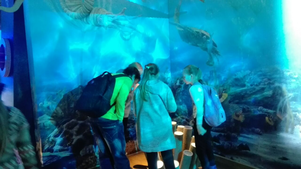После этого наша школы природы отправилась на новую выставку "тайны древнего моря" в музее природы. Над этой выставкой работала целая команда людей, в число которых входили также аниматоры, потому что вдобавок к представленным в выставочном зале окаменелостям и крупным моделям обитателей морей, были сделаны увлекательные видеоинсталляции, которые позволяют воссоздать пейзаж минувших лет и увидеть насколько удивительные животные и растения жили в морях в разные периоды: Девона, Силура и Ордовика